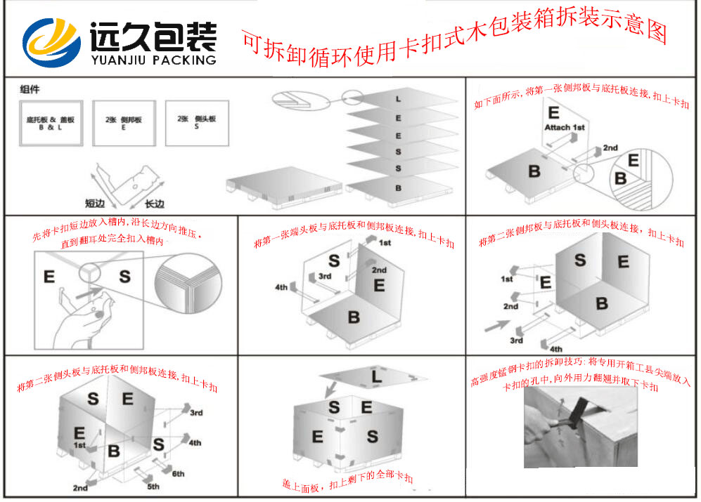 隨著我國(guó)包裝業(yè)在近十年中的迅猛發(fā)展,木箱包裝的功能也從傳統(tǒng)的、單一的運(yùn)輸保護(hù)功能逐步轉(zhuǎn)變?yōu)榫哂姓w概念的、綜合類型的包裝方案,而且也有了以客戶需求科價(jià)值鏈為導(dǎo)向的包裝解決方案。 對(duì)于被包裝產(chǎn)品來說,對(duì)其進(jìn)行運(yùn)輸包裝其實(shí)就是要基于被包裝產(chǎn)品及木箱包裝本身的生命周期,充分考慮產(chǎn)品及木箱包裝制作與供應(yīng)、倉(cāng)儲(chǔ)與運(yùn)輸、從包裝裝配到廢棄物的回收與處理等全部過程中,進(jìn)行一個(gè)整體的包裝解決方案設(shè)計(jì)。 在我國(guó)也針對(duì)木箱包裝設(shè)計(jì)制訂了國(guó)家標(biāo)準(zhǔn),GB/T 19451-2001《運(yùn)輸包裝設(shè)計(jì)程序》,規(guī)定了運(yùn)輸木箱包裝設(shè)計(jì)的基本要求、方法和一般程序。 工業(yè)木箱包裝主要是為了便于運(yùn)輸裝卸和倉(cāng)貯,卡扣木箱作為一款包裝容器,一經(jīng)上市就受到廣大用戶的喜愛,是因?yàn)樗泻芏嗟膬?yōu)點(diǎn),傳統(tǒng)的木箱一般通過釘子進(jìn)行固定,裝卸不便,且一次使用后易對(duì)其造成損壞,不便多次使用。 在拆卸、拼裝、運(yùn)輸貨物的過程中,金屬件對(duì)膠合板的造成嚴(yán)重的破壞,金屬件與板材的連接存在越來越大的空隙,箱板之間的連接不夠緊密,木箱的使用壽命變短。卡扣木箱包裝結(jié)構(gòu)簡(jiǎn)單,快裝易拆,它不同于柵欄式花格木箱每一個(gè)部件都需要采用鐵釘連接,卡扣木箱的箱體只有六塊,組裝時(shí)只需將六塊箱板用高強(qiáng)度錳鋼連接件連接。 木箱包裝是運(yùn)輸包裝件的重要組成部分,在流通過程中主要起保護(hù)產(chǎn)品、方便運(yùn)輸?shù)淖饔谩3送ǔ?duì)木箱包裝有結(jié)構(gòu)、形狀、材質(zhì)等方面的要求具有一定的機(jī)械強(qiáng)度,以保護(hù)產(chǎn)品在裝卸運(yùn)輸和倉(cāng)儲(chǔ)條件下完好無損。還應(yīng)專注于各類包裝材料功能性、生產(chǎn)工藝性及相關(guān)理論方面的東西。 卡扣木箱包裝廠家選用的材料均為經(jīng)過高溫處理過的膠合板或定向刨花板(也叫OSB),出口免熏蒸是它的優(yōu)勢(shì);卡扣木箱包裝在組裝封箱時(shí),應(yīng)防止已長(zhǎng)霉材料和有機(jī)物質(zhì)混入包裝件中,在包裝件運(yùn)輸過程中力求干燥和通風(fēng),發(fā)現(xiàn)卡扣包裝箱內(nèi)的包裝件有長(zhǎng)霉現(xiàn)象應(yīng)及時(shí)處理,以免傳染其它包裝件。根據(jù)GD/T 4768-1995標(biāo)準(zhǔn),包裝材料耐霉程度可分為以下三種: 1、耐霉材料:此類材料大部分為人工合成材料與無機(jī)材料,不能給霉菌提供營(yíng)養(yǎng)物質(zhì)。 2、半耐霉材料:這類材料應(yīng)用最廣,由耐霉與不耐霉材料混合而成,耐霉性不穩(wěn)定,其耐霉程度主要取決于組成物質(zhì)、添加劑以及混合組成時(shí)的加工工藝。 3、非耐霉材料:在霉菌實(shí)驗(yàn)時(shí)其長(zhǎng)霉程度嚴(yán)重,此類材料大都是天然有機(jī)材料及其制品,能提供霉菌生長(zhǎng)的養(yǎng)料,如紙張、棉紡織品、天然橡膠、皮革等。
